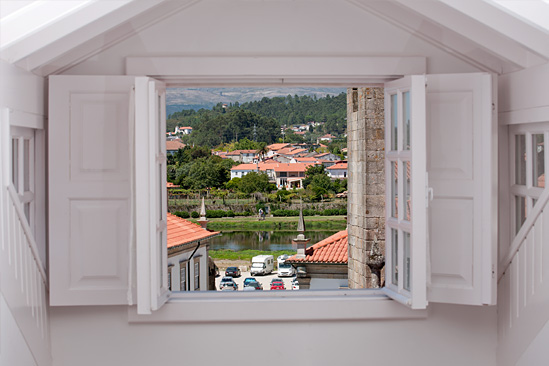 - Tem uma porta de acesso a uma varanda, virada ao largo de Igreja Matriz, com vista sobre o telhado da Igreja, casas vizinhas e Rio Lima.
