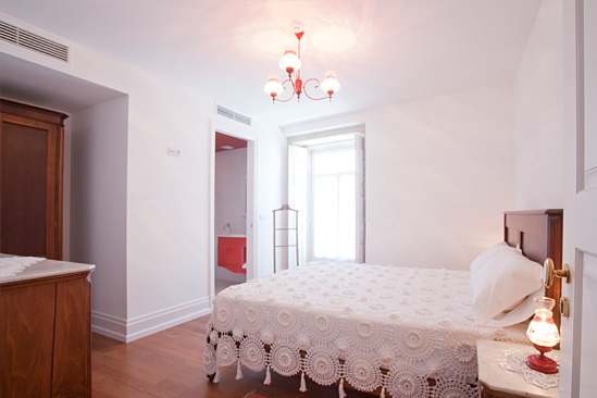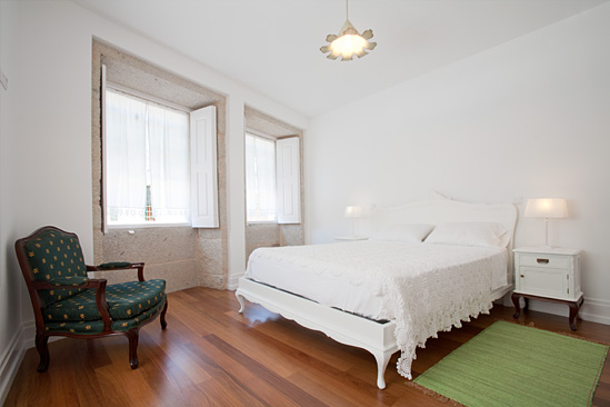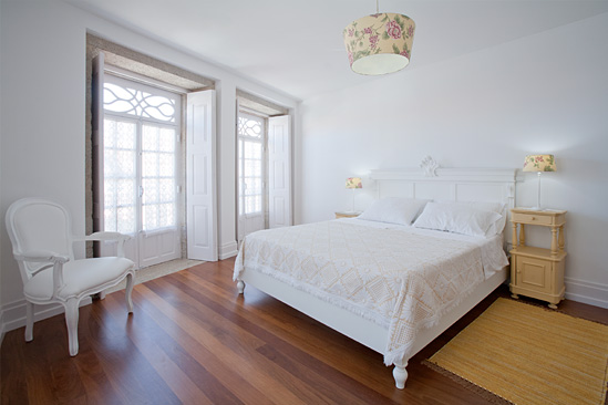 - Situa-se no 1º andar, quarto de casal, com móveis lacados a branco e à cor de madeira.
